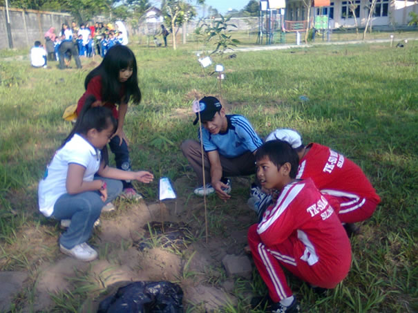 Ini gambar siswa siswi SD Model kelas 2A yang sedang melakukan percobaan mata pelajaran PLH ( Pendidikan Lingkungan Hidup) bersama guru kelasnya Mr. D...